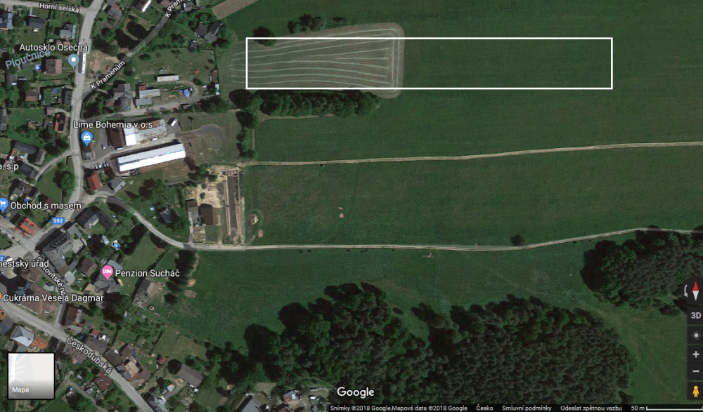 Soukromá louka leží východně od Osečné, je suchá pevná, přistával jsem tam několik let.. délka posekané louky je 300m, šířka 25m, celková délka je 800m, 300 metrů je náměstí, restaurace a pension. Osečná leží přímo pod Ještědem.